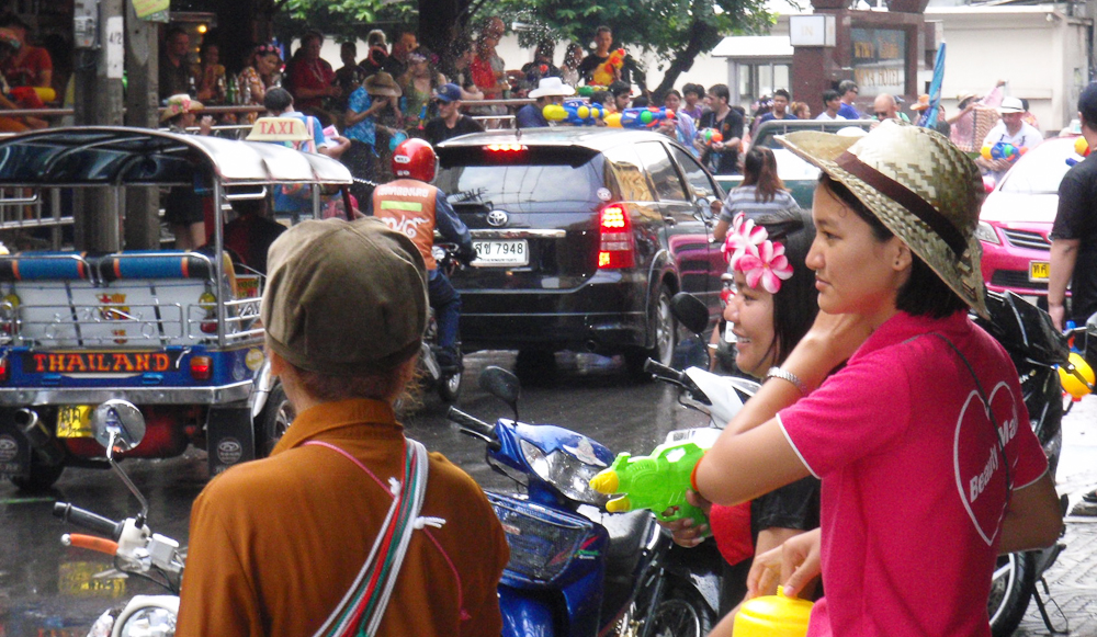 With people on both sides of the road armed with super-soaker waterguns, buckets and hoses, anyone caught in the cross fire is going to get wet, especially if you are in an open-sided tuk-tuk stuck in traffic !