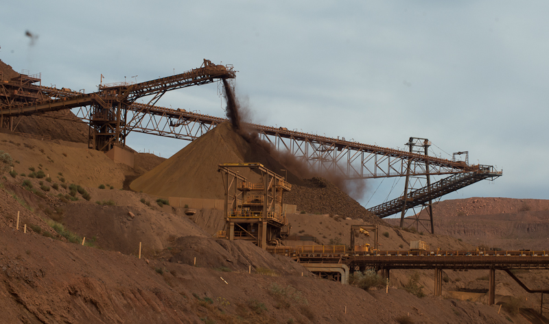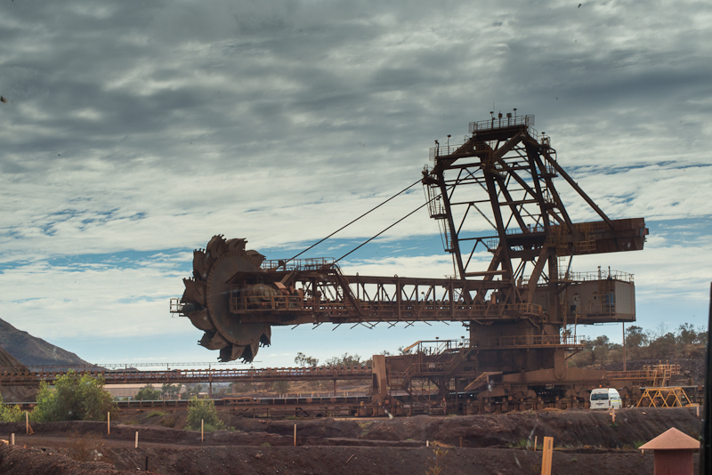 Before I started this trip I lived in the Hunter Valley, New South Wales, which is a big coal mining district. I saw all the trains heading to the port loaded with coal and thought it was big business ….it is, but nothing compared to the mining up here in the Pilbarra. All the politicians and economists used to talk about a “2 speed economy” and when you get up here you really see what they mean. There are mining and construction vehicles everywhere, with armies of workers in hi-vis shirts everywhere. While I was at Karajini I took one of the tours through Rio Tinto’s Tom Price mine, and some of the numbers the guide quoted were amazing.
