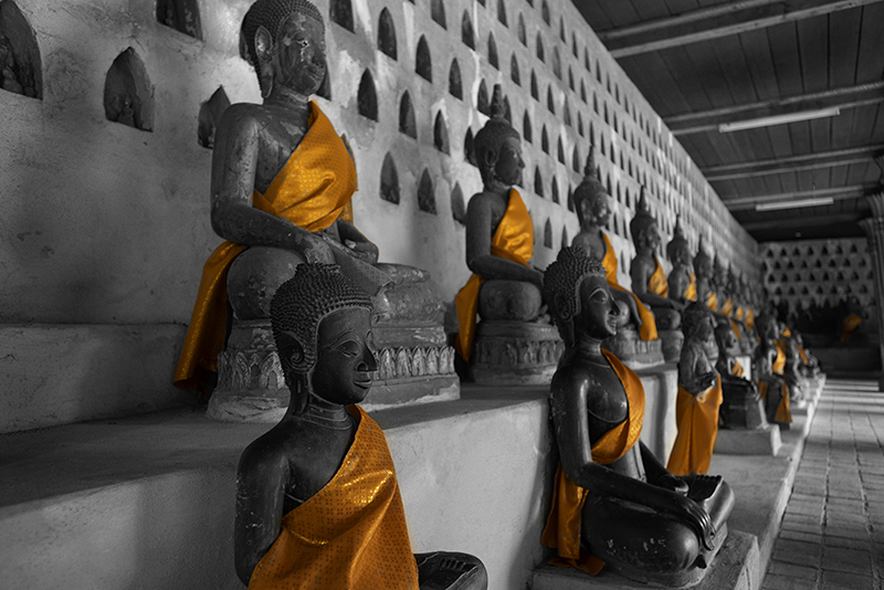 Buddhas at Vientiane’s oldest temple, Wat Si Saket ( with a bit of help from Topaz B&W Effects and Photoshop)