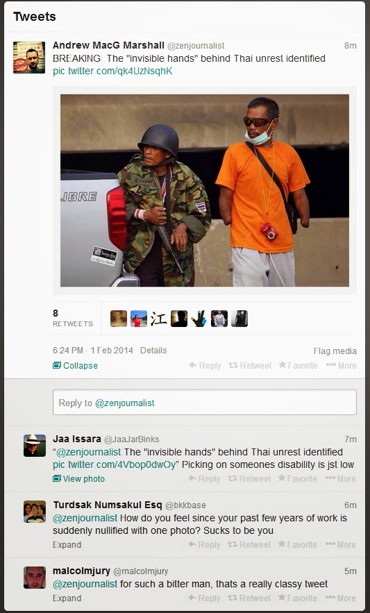 Andrew McGregor Marshall is a some-time journalist, some-time pen for hire often used as an expert on Thai politics by BBC, CNN, Reuters, even though his main job is writing PR for Thaksin Shinawatra’s lobbyist Robert Amsterdam so he is hardly neutral.