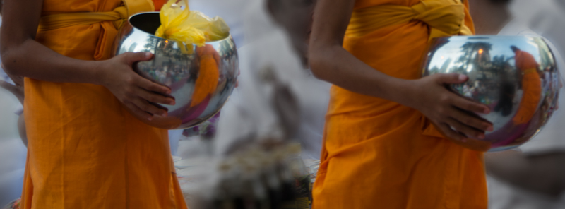 I let my friend go and give alms by herself, citing an inability to sit cross legged for 2 hours during the service due to old age. Apart from that, I did n’t have any white trousers to wear, and I would rather take photos of the event.