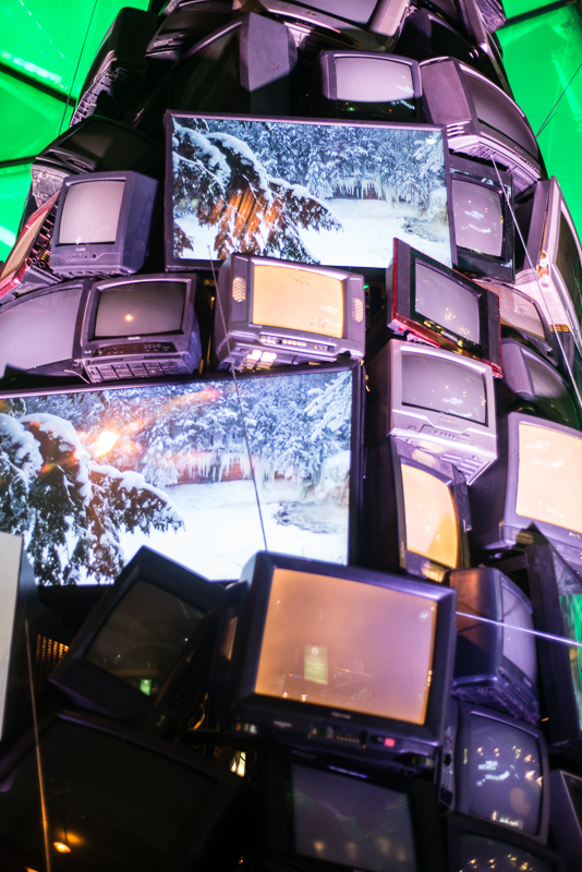 Some of the TVs still work, as I found out when I went back past it at night the other evening.
