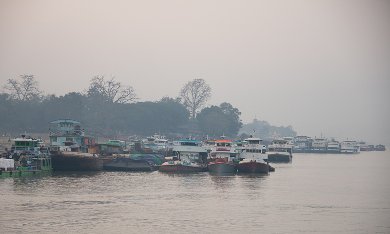 There was a lot of other river traffic, from local ferries crossing the river, fishermen, lots of tugs pushing barges upstream loaded with all sorts of goods and a couple of luxury cruise boats that take a week or more to go from Yangon to Mandalay.