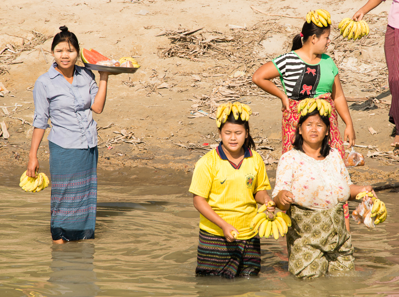 At one of these stops a group of woman waded into the river up to their shoulders trying to sell bananas, at 2000 kyat a bunch (about US$2). If I had known how bad lunch was going to be I would have bought some …