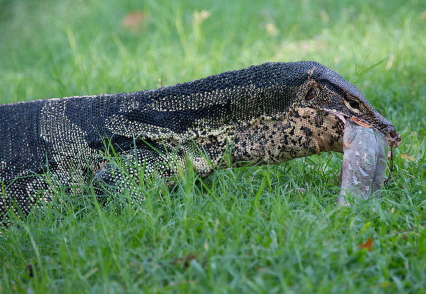 Of course humans+food=scraps, which brings out the scavengers like this fellow, one of the parks resident lizards slurping up some noodles. I figure I’ve done enough exercise by now as well so I sit under a tree by the side of the lake, and soon enough several of the lizards have the same idea and sit on the bank within a 10 metres of me, including one that must have been at least 2 metres long. They are certainly not scared of humans !