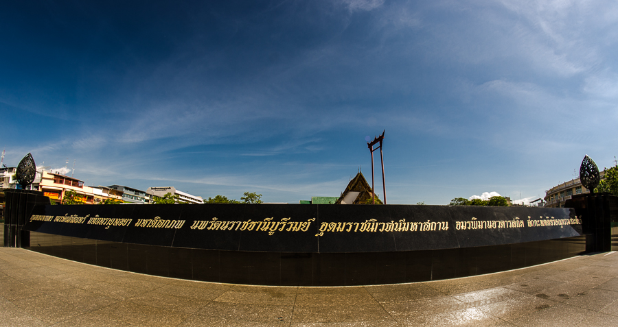 This is the sign in front of the Bangkok City Hall, with Bangkok’s full name on it ….so long it needs a fisheye lens to fit it all in !