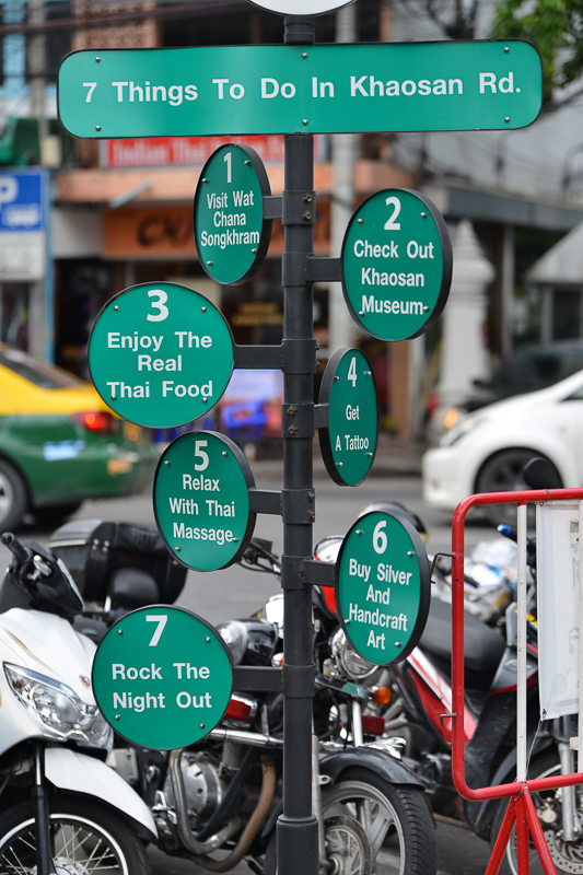 Nowadays Khao San road itself is just a long line souvenir stalls lining the pavement, so all the bars and restaurants along it just look at the back of a tent, and they all seemed empty. Most of the dining,drinking and people watching action is on nearby streets nowadays.