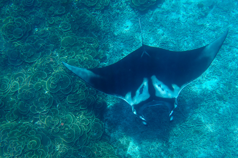 On the way out to the islands we had a (very brief) sighting of a whale shark and then some dolphins, and at our first stop we hit the jackpot …. manta rays ! The first one came along just a few seconds after I had jumped in, and shortly after that another came swimming straight towards me. That set the tone for the next 3 days, we saw just about everything …turtles, sharks, barracuda, octopus and the usual multitude of multi-coloured tropical fish.