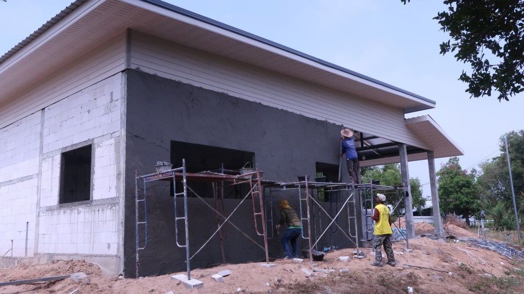 If there is one thing that Thai builders can do well, it would be the rendering. These guys were getting perfectly straight corners and windows without using edge beading, just their hand tools.