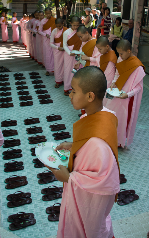 At lunch time, around 100 girls line up silently for lunch, leaving their shoes in perfect rows.