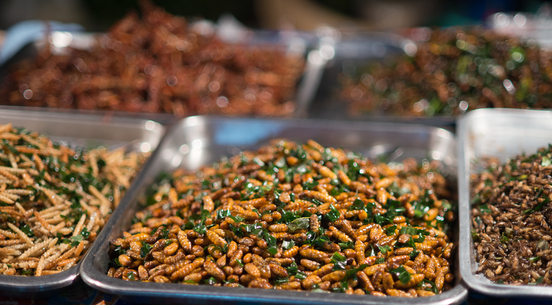 yummy, fried bugs. Food vendors cart, Ploenchit rd
