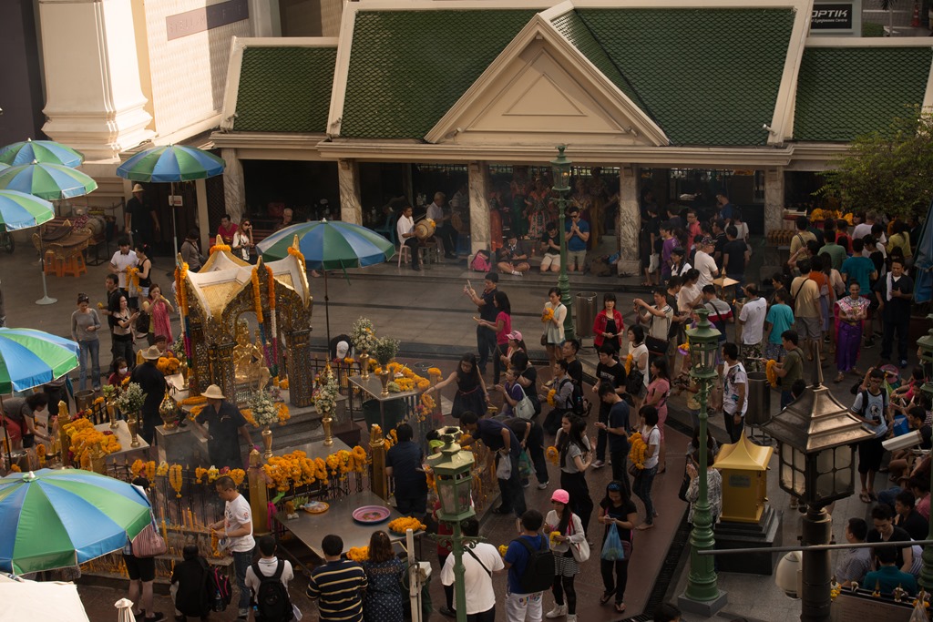 Yesterday I mentioned Halloween and how Thais love a good ghost story …. this is the shrine to Mae Nak, which is one of Thailand’s most famous ghost stories and has been made into several films. Nak was a beautiful woman who supposedly lived in this district about 200 years ago, and whose husband Mak was conscripted into the army during a war. While he was away Nak and their baby died during childbirth, but stay in their home as ghosts until Mak returns from the war. When his friends try to tell him she is just a ghost he does not believe them, and she kills the friends for trying to separate them. One day though she drops some fruit onto the ground, and he sees her stretch out her arm to pick it up and realises the truth. That night he sneaks out of the house and runs off to the local temple, Wat Mahabut, which she cannot enter as it is holy ground. In her anger she terrorizes the locals before an exorcist captures her spirit. Nowadays women come here to pray for an easy childbirth or for their husbands and boyfriends to avoid conscription … there is quite a collection of beautiful dresses inside that have been given to her !